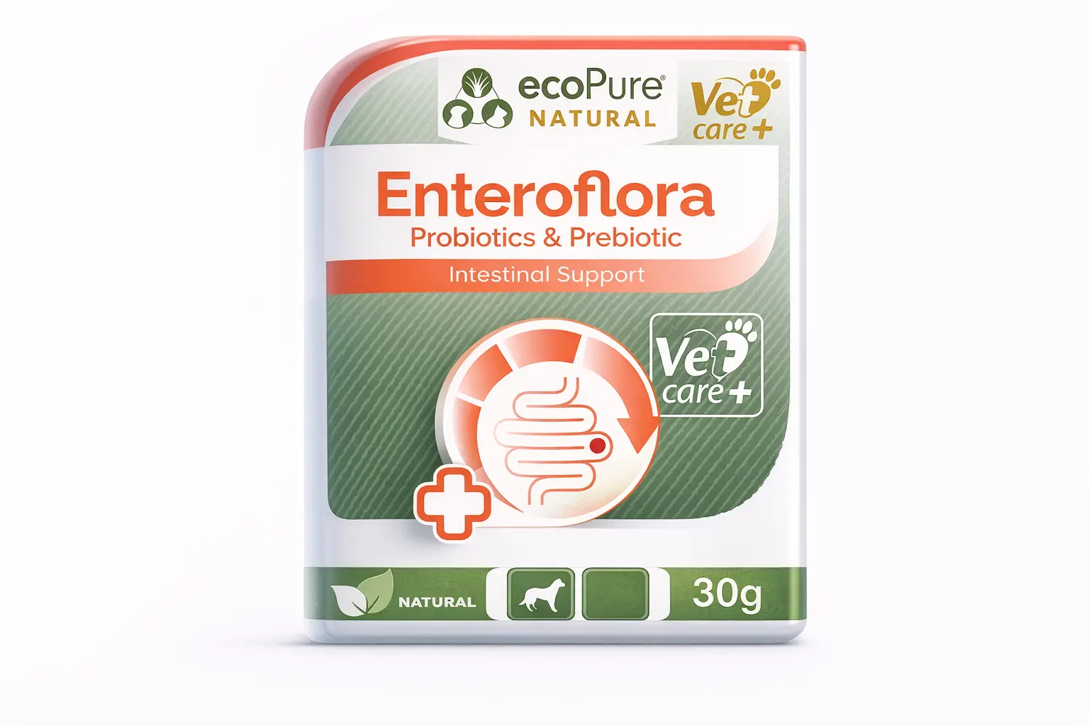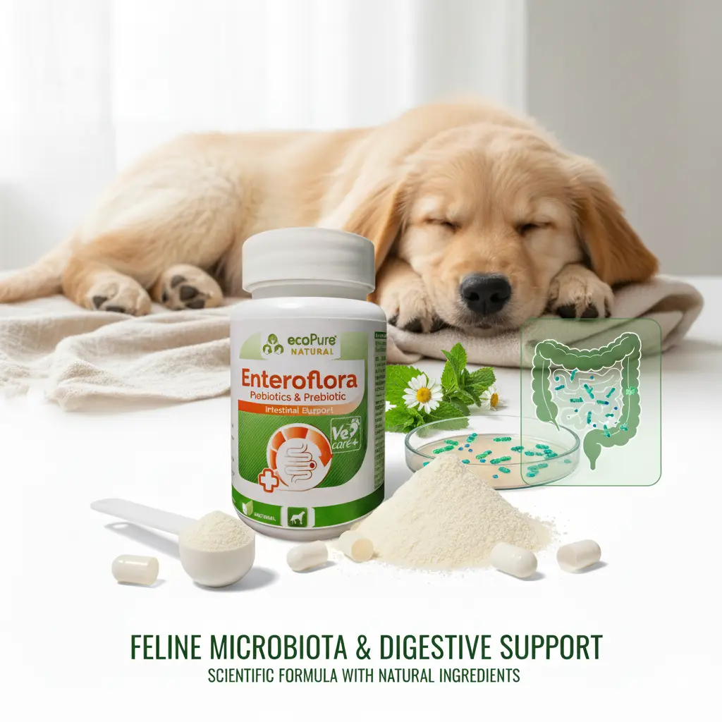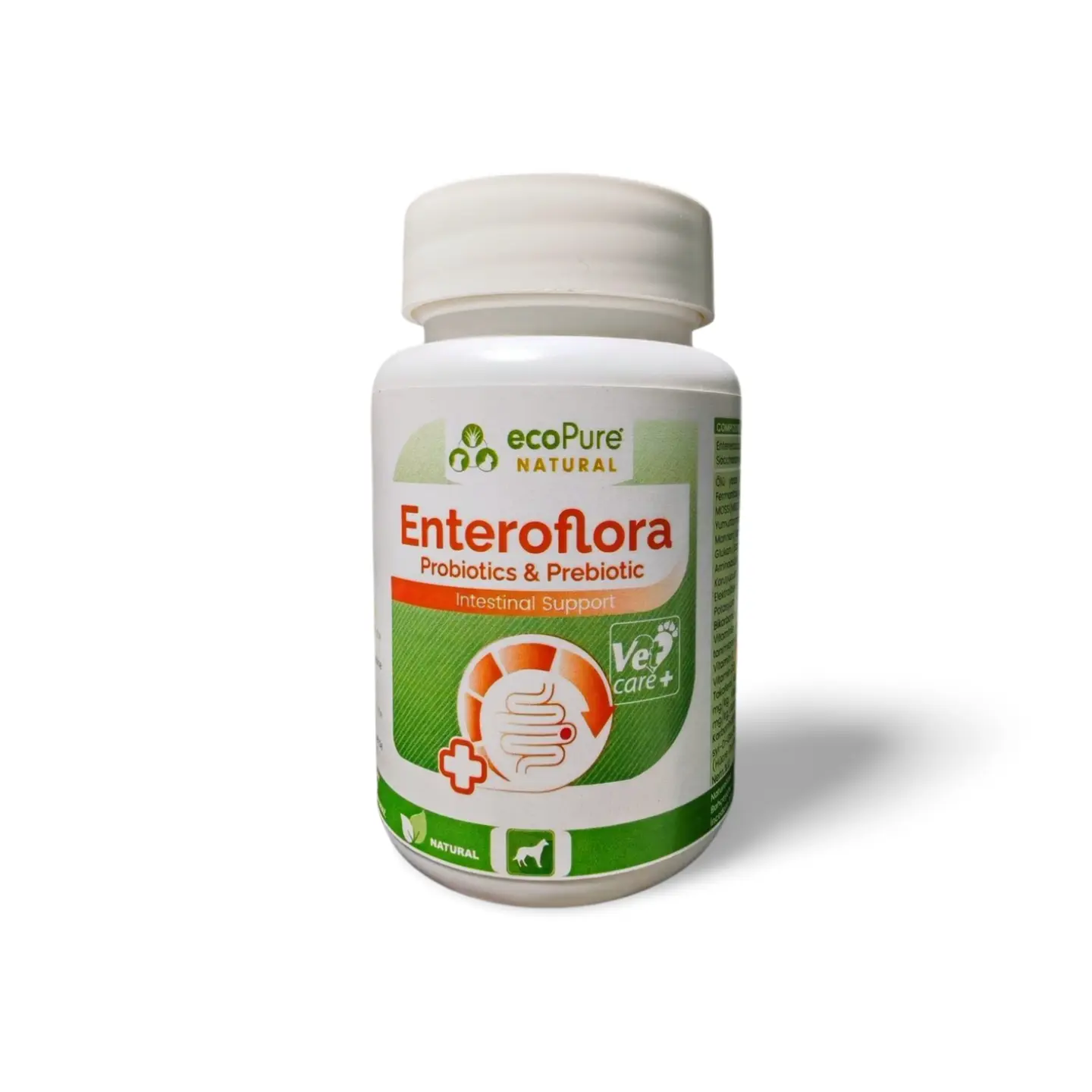 EnteroFlora®, köpeklerde bağırsak florasının dengelenmesi, sindirim sağlığının desteklenmesi ve bağışıklık sisteminin güçlendirilmesi amacıyla geliştirilmiş, probiyotik + prebiyotik + postbiyotik + vitamin + elektrolit içeren ileri formülasyonlu bir tamamlayıcı yemdir.