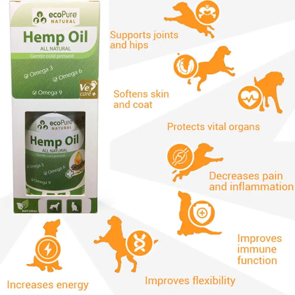 Doğal olarak mükemmel Omega 6 – Omega 3 oranına (3: 1) sahip olduğunuz yağ asitleri köpek ve kedi ihtiyacı var. Kenevir tohumu yağı Omega 6 (linoleik asit), Omega 3 (linolenik asit), Omega 9 (oleik asit), GLA (gama linolenik asit) ve steridonik asit içerir. Kenevir tohumu yağı, toksinlerin yutulması tehlikesi olmadan balık yağı ile aynı yararları sağlar. Bitkisel yağ, bir köpeğin ve kedinin cildini ve kürkünü nemlendirir, çünkü bitkiseldir ve balık yağı gibi hiçbir yan etkisi yoktur.