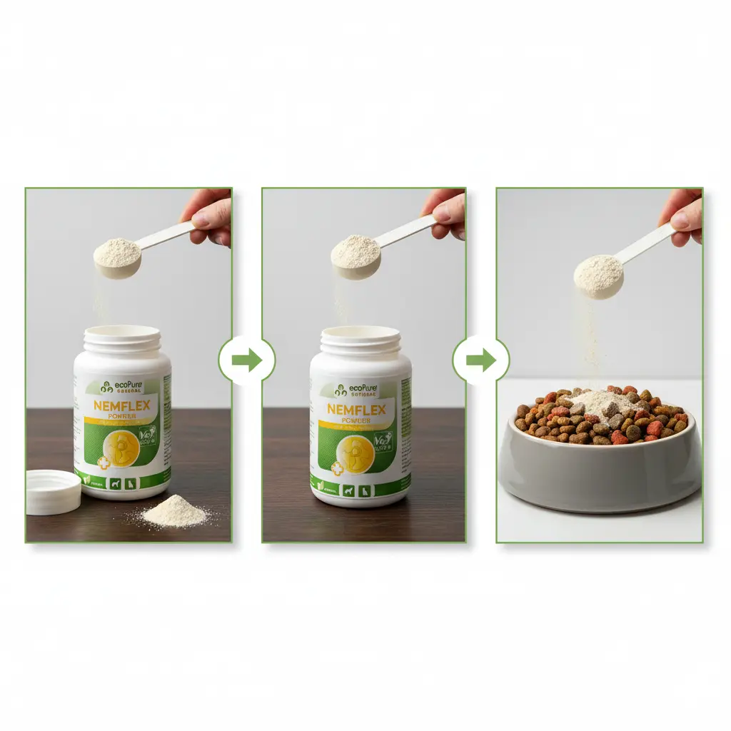 Tek bir doğal bileşende çok sayıda ortak sağlık besininin bu benzersiz kombinasyonu, NEMFLEX ® ‘in hızlı, tek şişe sonuçları için önemli bir faktör olabilir. Evcil hayvanınıza her gün NEMFLEX® vermek, köpeğinizin eklem sağlığını iyileştirebilir ve destekleyebilir, köpeğinizin genç hareketliliğini ve esnekliğini koruyabilir.