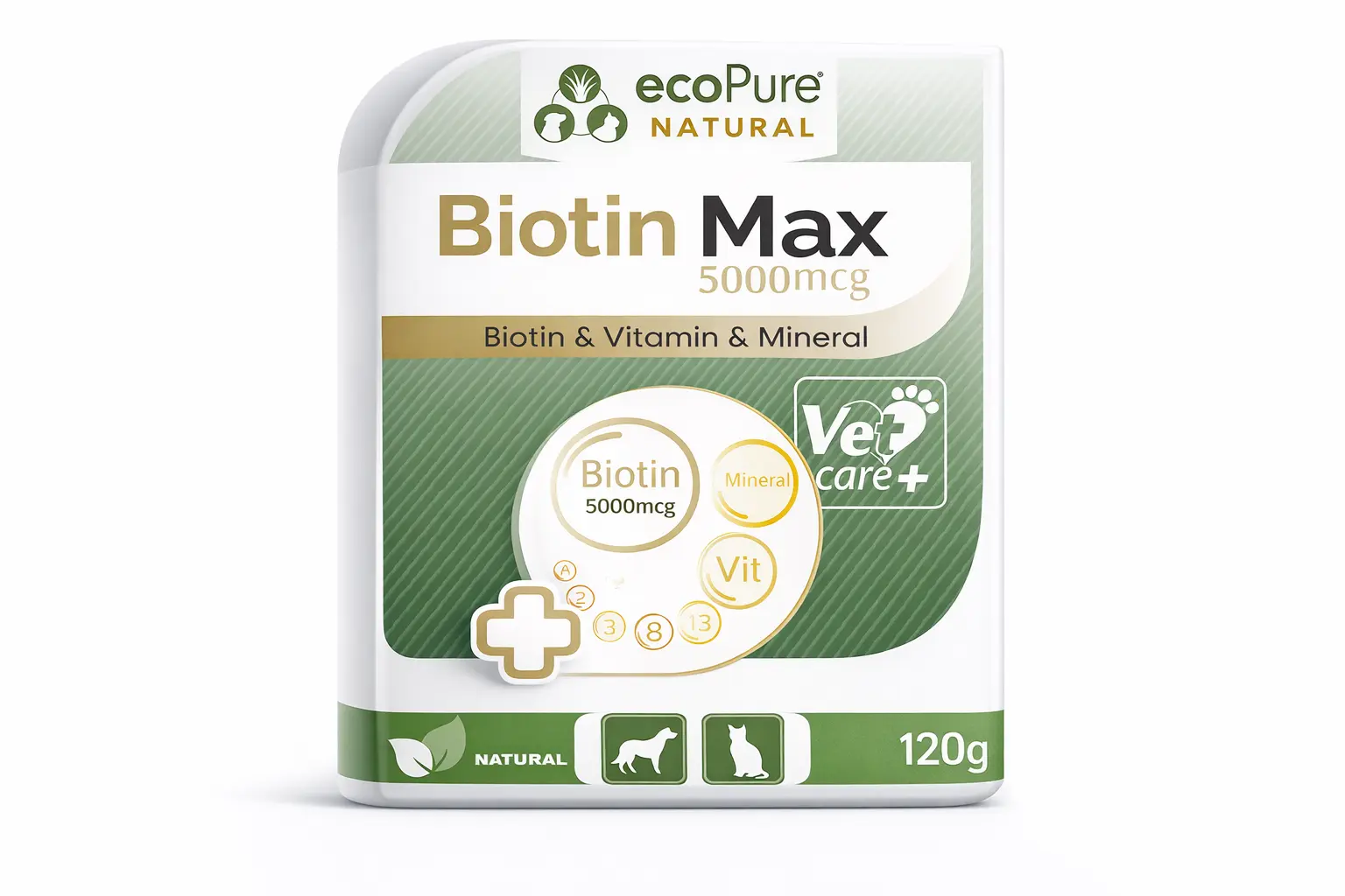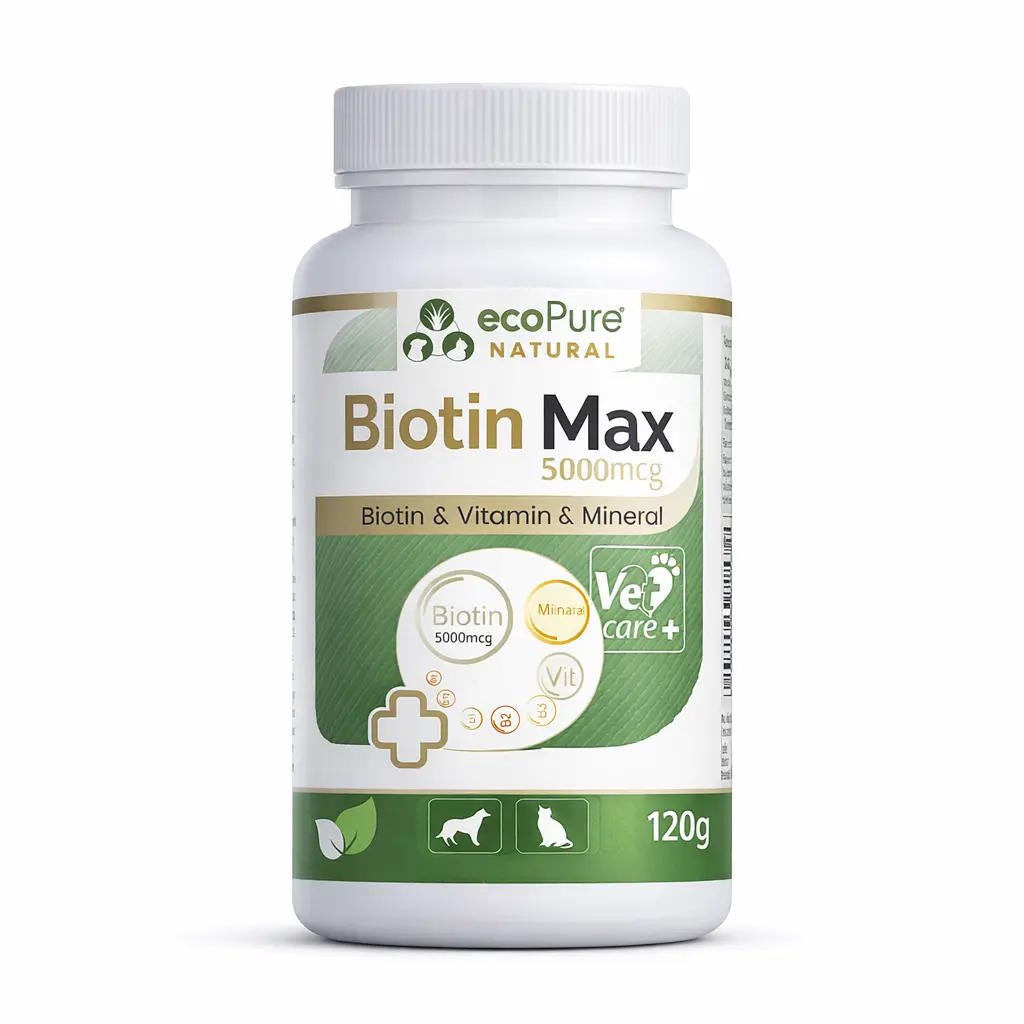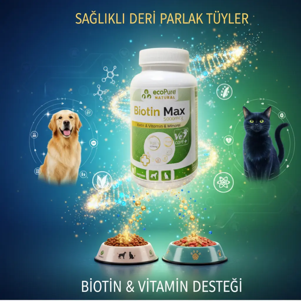Deri ve tüy desteği amacıyla geliştirilen BiotinMax, kedi ve köpeklerde deri sağlığının ve tüy yapısının fizyolojik olarak desteklenmesine yardımcı olan veteriner formülasyonlu bir üründür. Özellikle tüy kalitesinin korunmasına, sağlıklı deri yapısının desteklenmesine ve genel bakım dengesinin sürdürülmesine katkı sağlamayı hedefler.