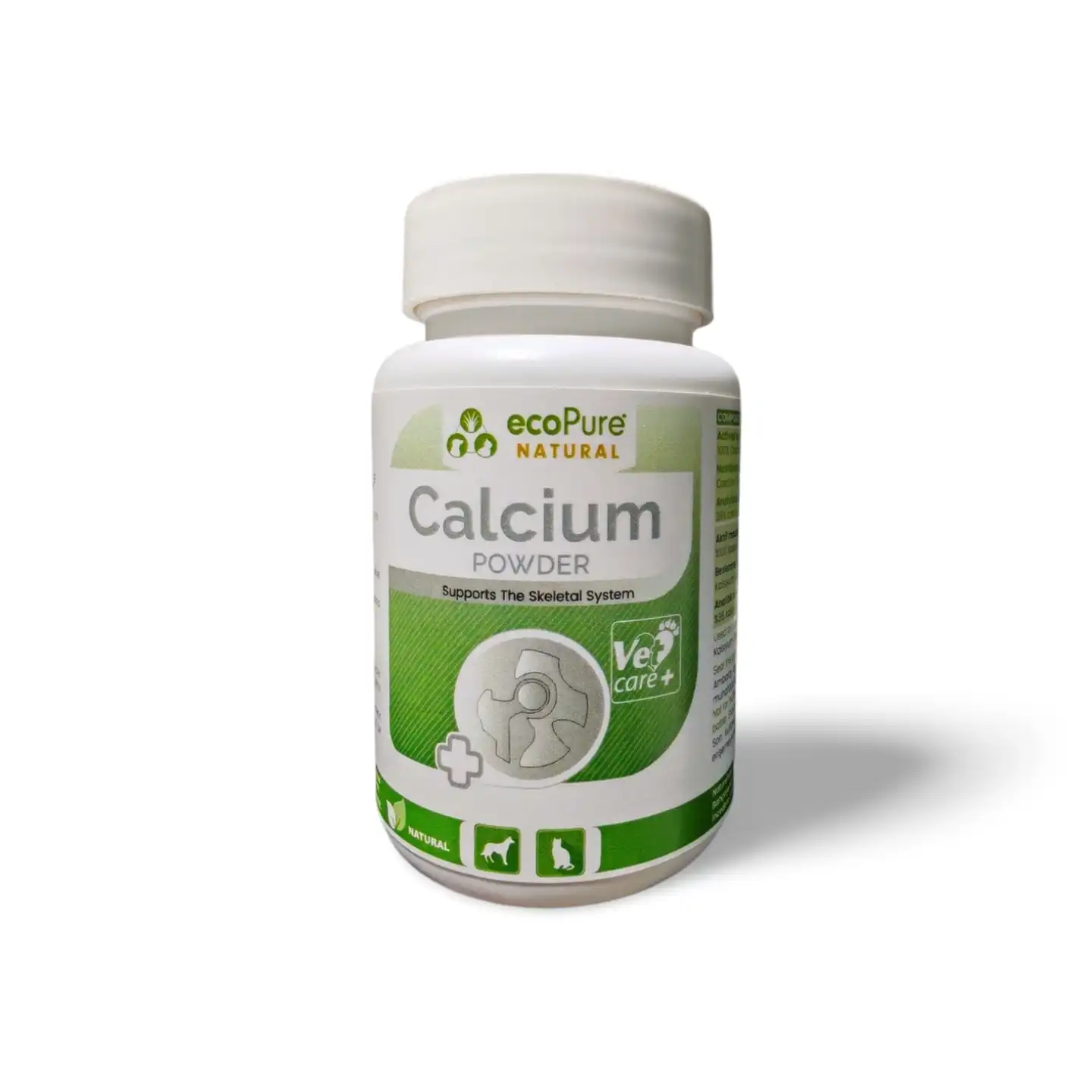 Özellikle büyümekte olan yavru ve kedi yavruları, kemik oluşumunun mümkün olan en iyi şekilde desteklenebilmesi için artan kalsiyum gereksinimlerine bağlıdır. Hamile hayvanlar ayrıca diğer canlılara gerekli minerali sağlamak zorunda oldukları için daha fazla kalsiyuma ihtiyaç duyarlar. Yaşlılarda kalsiyum karbonat alımı kemik kaybı sürecini yavaşlatmaya yardımcı olabilir. VetCare Kalsiyum Karbonat Tozu, günlük yemle kolayca karışabilecek kadar ince öğütülür. Lezzet açısından yüksek kabul görmektedir.