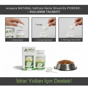 Struvit-Ex ihtiyaca göre kullanılabilir. Lütfen yiyeceklerin içerisine karıştırınız. Topaklanma doğaldır, çünkü herhangi bir madde eklenmemiştir.